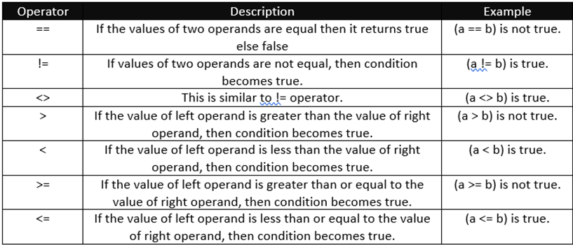 Comparison Operators: