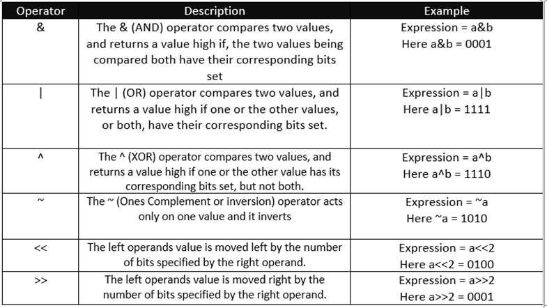 Bitwise operator is an operator used to perform bitwise operations on bit patterns or binary numerals that involve the manipulation of individual bits.