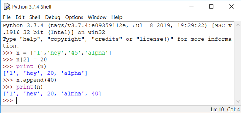 Lists in Python are used to store collection of heterogeneous items. The contents can be changed during the execution of the program. It is written between square brackets separated by comas. The items in a list need not be of the same type.