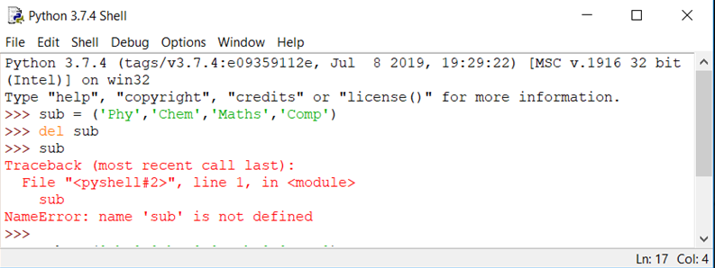 Removing individual tuple isn’t possible cause its not changeable. We can delete the entire tuple. Using the keyword del.