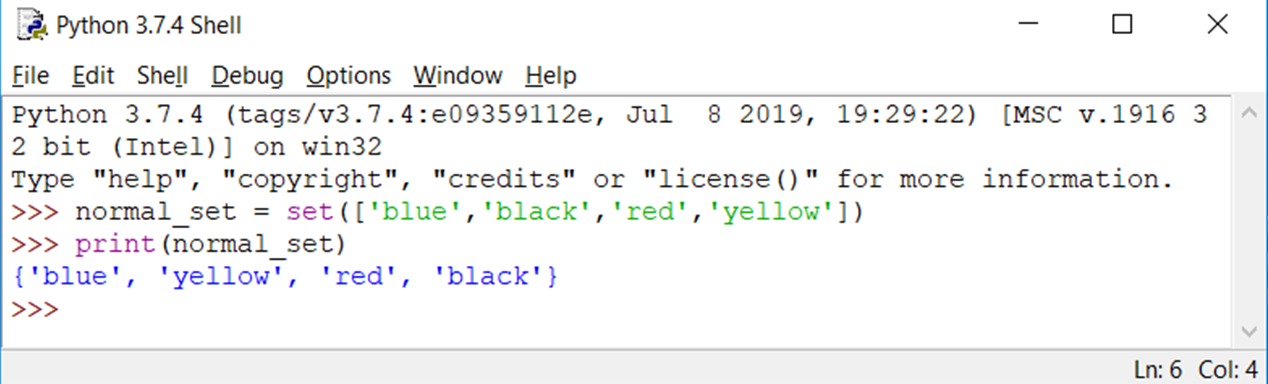 A Set is an unordered collection data type iterable, mutable, and has no duplicate elements. Advantage of using a set is that it has a highly optimized method for checking whether a specific element is contained in the set.